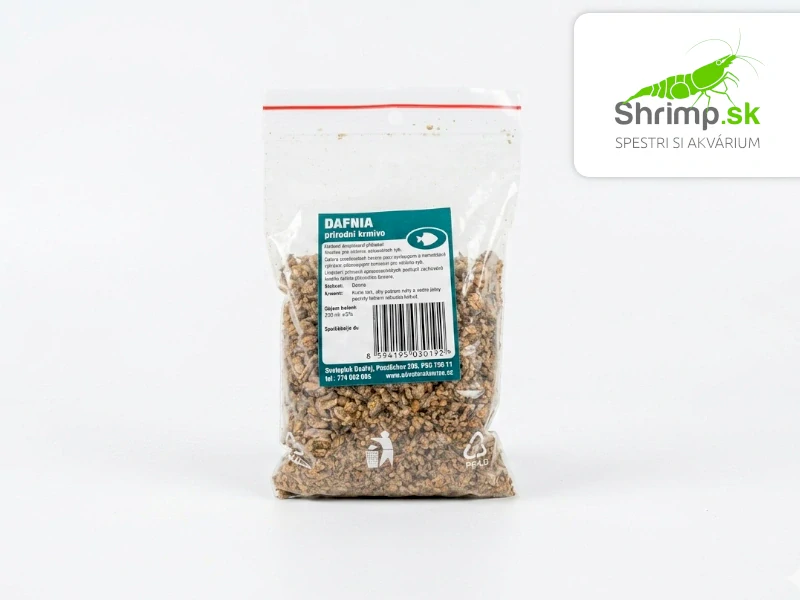 Lyofilizovaná dafniа je prírodné krmivo z drobných sladkovodných kôrovcov (Daphnia), spracované prudkým zmrazením a sušením mrazom pri extrémne nízkych teplotách (až okolo -200 °C). Vďaka tomu sa odstráni voda, no zachovajú sa všetky dôležité živiny, vitamíny aj prirodzená chuť. Výsledkom je kvalitné krmivo pripravené na okamžité použitie bez potreby ďalšej úpravy.
