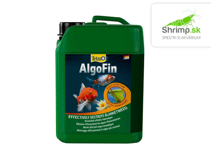 Tetra Pond AlgoFin účinne pôsobí proti vláknitým, plávajúcim a slizovitým riasam. Prevencia rastu rias. Likviduje riasy počas dvoch až troch týždňov. Veľmi jednoduché používanie a presné dávkovanie. Používa sa v záhradných jazierkach s rybami, rastlinami a mikroorganizmami.